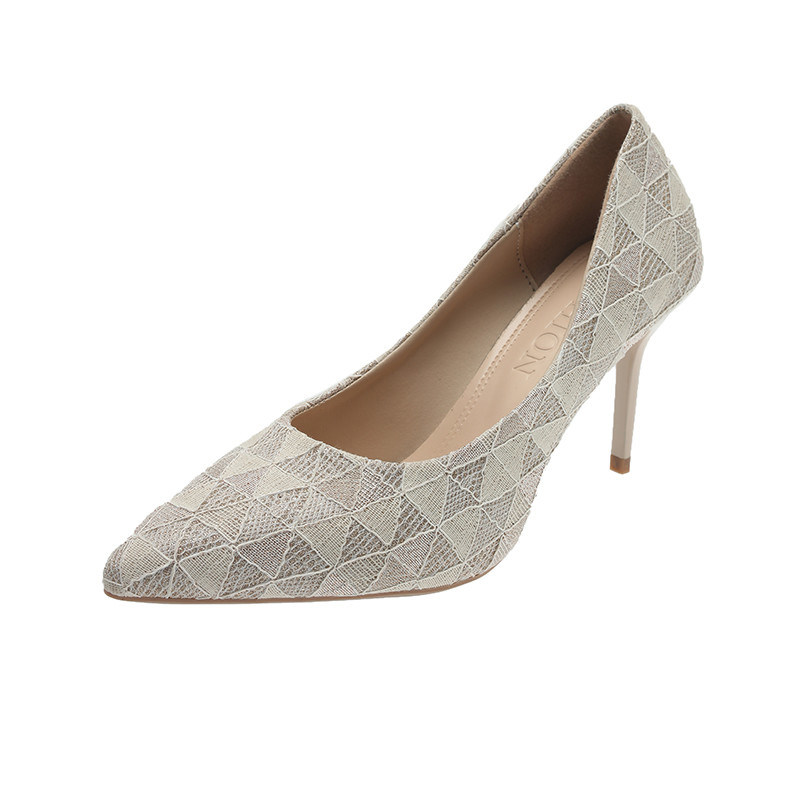 लेस प्रिंट समर लाइट सिंगल लेडीज हाई हील शू शैलो माउथ स्टिलेट्टो